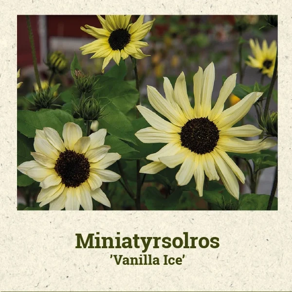 En av många nyheter i sortimentet. Vackra cremevita blommor med vaniljgul mittring och svart mitt. Flergrenande, buskiga plantor som blommar rikligt hela sommaren. Perfekt bakgrunds- eller centrumväxt i rabatter och lådor.