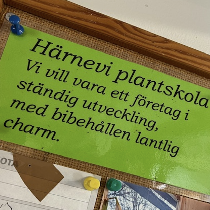 Visionen från Härnevi plantskola tar vi med oss i framtiden. Den lantliga charmen är en stor del av handelsträdgården, men vi vill också utveckla och utvecklas för att alltid kunna erbjuda ett relevant sortiment och kompetens som möter våra kunders behov och önskningar.